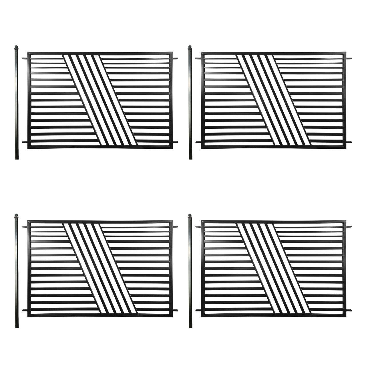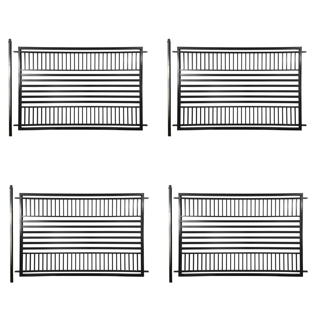 ALEKO’s galvanized steel 4-panel security fence (32 ft. total length) is both a practical and elegant addition to your home. The welded galvanized steel is sturdy and strong, and it has a sleek black powder-coated finish to prevent rust and paint chipping. Designed in the Barcelona style, this steel gate’s straight lines and minimal detailing lend a modern look to any environment. Pair with Barcelona-style gates to complete your new fencing setup.