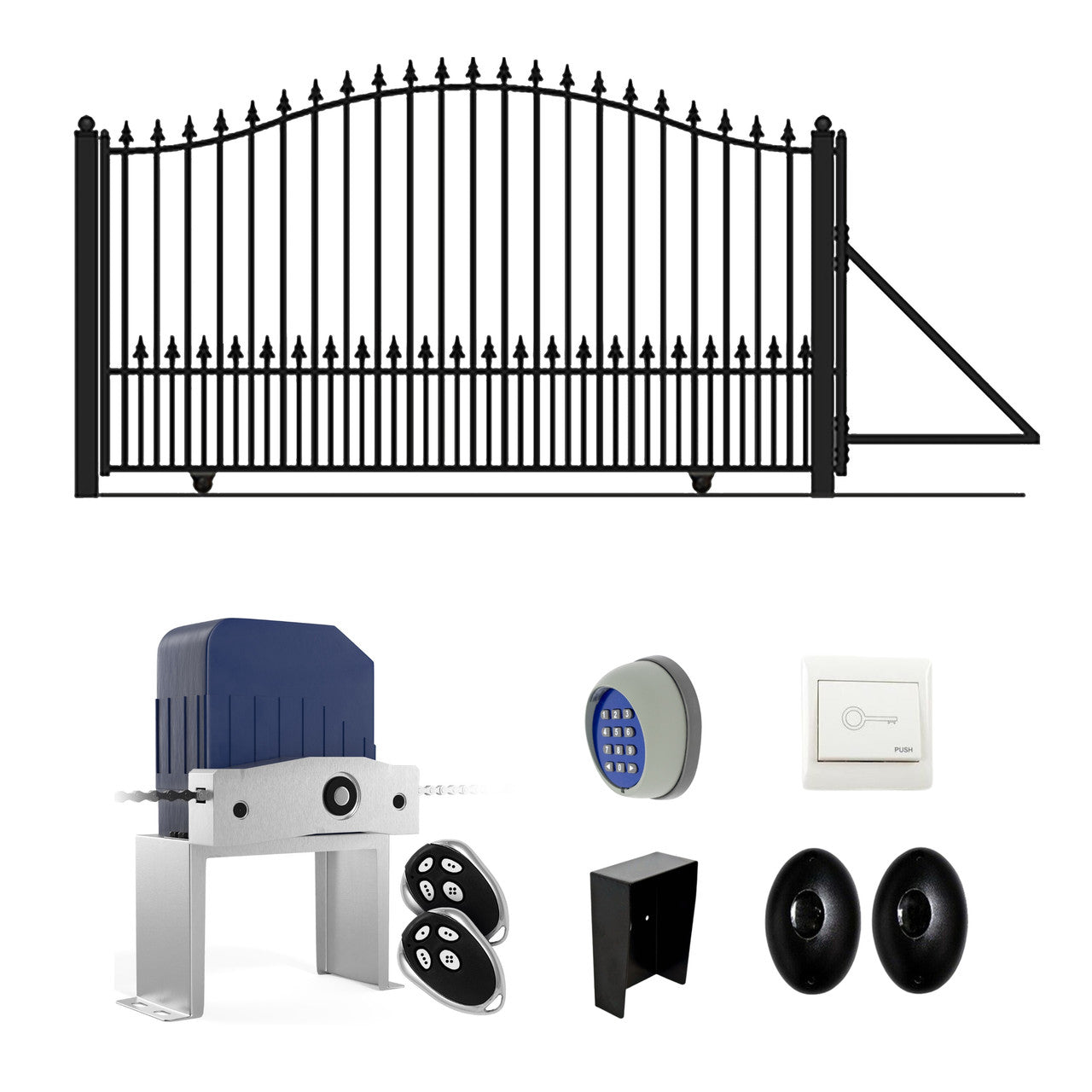 Aleko Automated Steel Sliding Driveway Gate and Gate Opener Complete Kit – LONDON Style – 14 x 6 Feet - DG14LONSSLAC1500-AP