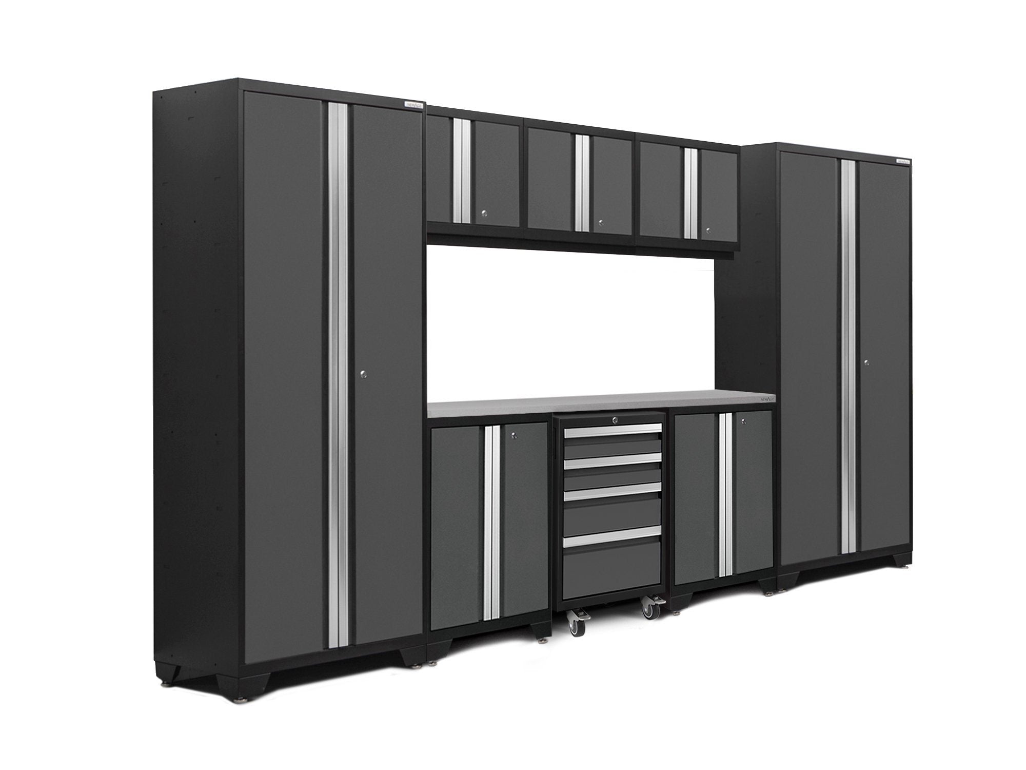 Designed to make a big statement in garages, workshops, mudrooms and other areas of your home, the Bold 3.0 Series cabinet system instantly upgrades the look of your space, providing you with organized storage for all your belongings. Built with heavy-duty 24-gauge steel for added strength, these cabinets are ready to hold everything from sports equipment to gardening tools, and the scratch and stain resistant powder-coat paint finish protects the cabinets from everyday heavy use. Full-length integrated handles allow you to quickly and easily access your gear, and adjustable steel shelves give you the flexibility to store items of all sizes, while fully-lockable doors ensure that your tools stay safe. A rugged Bamboo Worktop gives you the room you need for gardening, crafts, and home repairs, while providing a warm wood feel to your space. Get organized, and simplify your life, with Bold 3.0 Series Garage Cabinets.