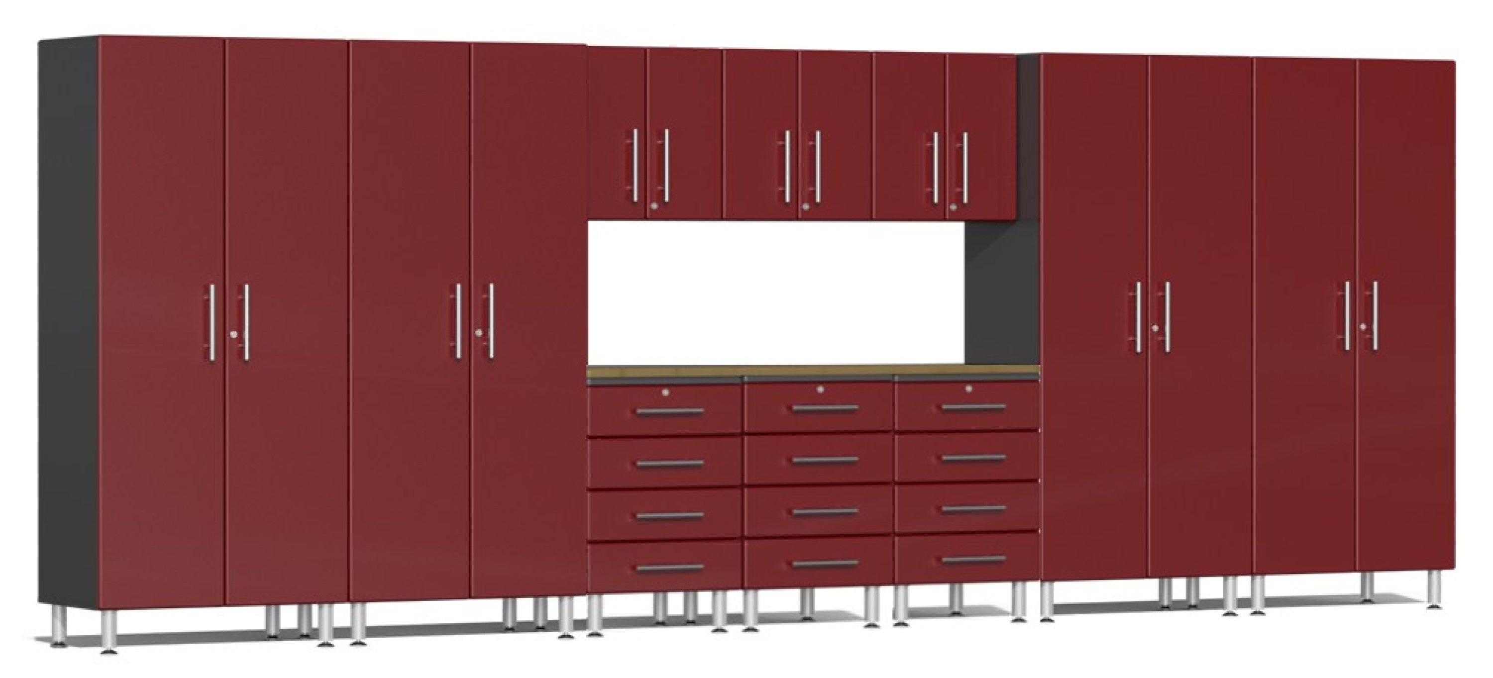 Ulti-MATE Garage 2.0 Series takes the back-to-back Consumers Digest awarded “Best Buy” cabinet line features to the next level. Eleven (11) piece set provides a great mix of oversized shelf, drawer and space saving storage. Set provides infinite single, multi-wall design options that's expandable. Industry unique metallic car-like color facing, industrial strength 1-inch thick shelves, full extension ball bearing drawer glides, radius profile for added style and reduced sharp corners are just a few features that make this the choice for any garage or commercial project.