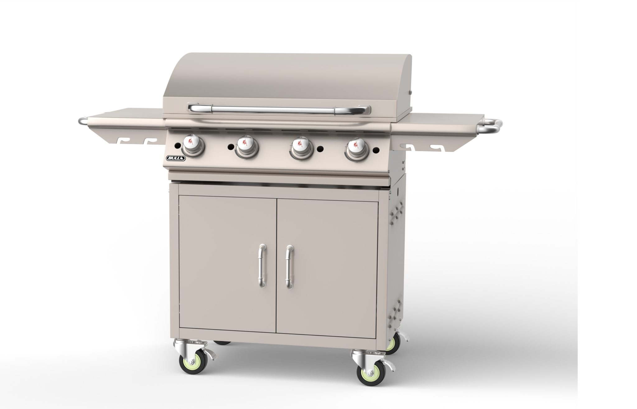 Like all of Bull’s products, the 30″ Bull Commercial Style Griddle is constructed of 304 stainless steel and uses four burners to produce 60,000 BTUs of power under a chromium plated griddle designed to withstand its intended outdoor application. The griddle sits upon a stainless-steel cart bottom that has two sturdy side shelves and a set of heavy-duty casters that make moving the cart around your outdoor living space very easy. The 30″ Commercial Griddle cart is available in both LP and NG versions.