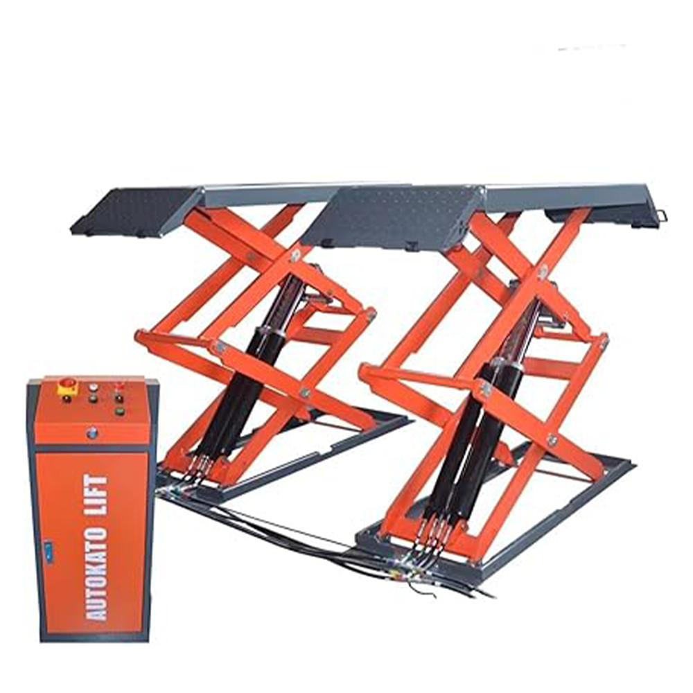 Heavy-duty hydraulic scissor mechanism provides stable vertical lifting suited for automotive service and heavy-equipment maintenance. Rated lifting capacity is 7,700 lb, enabling safe elevation of light trucks, SUVs and most commercial vehicles. Maximum lift height reaches 76 in while the lowest locking point sits at 5.5 in for efficient underbody access. Hydraulic power unit operates on 220 V supply and delivers smooth, controlled ascent and descent through recessed scissor arms. Welded structural construction and reinforced cross members provide load distribution and torsional rigidity during operation. Controls are positioned for operator visibility and include mechanical locks for secure holding at service height. Platform footprint and geometry allow common wheelbase alignment and service access across vehicle widths. Service and maintenance access is simplified by exposed hydraulic fittings and removable panels for pump inspection. Pick-up and shipped purchasing options are available with varying delivery and setup arrangements. Comprehensive documentation and recommended professional installation ensure safe integration into a shop environment.
