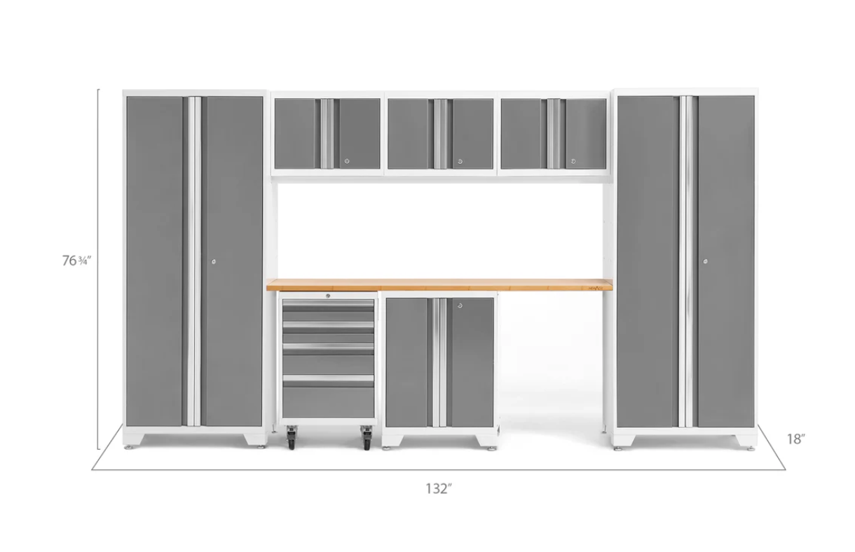 NewAge Garage Cabinets BOLD Series Platinum 14-Piece Set NewAge Garage Cabinets BOLD Series Platinum 14-Piece Set with Stainless Steel Top - 56993