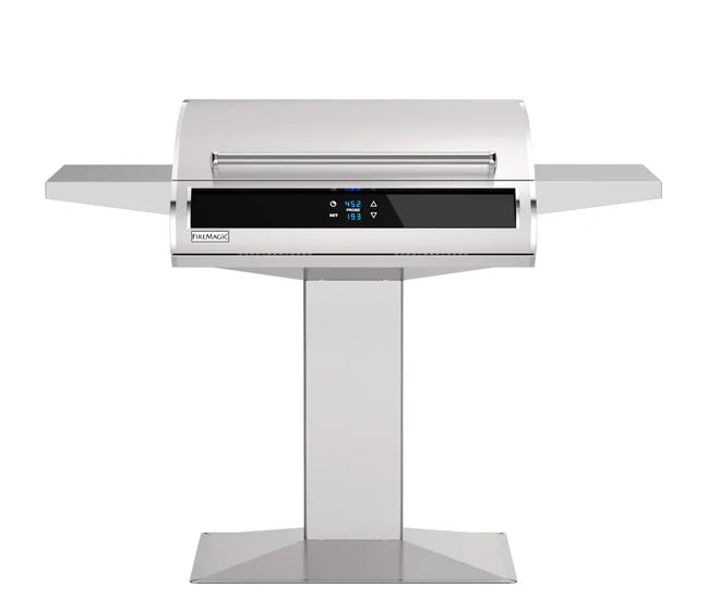 Premium 304 stainless steel construction provides corrosion resistance and long-term outdoor durability for patio or deck installations. The 480 sq. in. primary cooking surface (30" x 16") and 150 sq. in. warming rack deliver broad capacity for entertaining multiple guests. The heavy-duty electric heating element reaches up to 700°F and achieves full searing temperature in under 15 minutes for efficient, consistent results. Dual thermostatic control options and Bluetooth-enabled temperature monitoring give precise set-and-forget control over separate grilling zones. Patented Diamond Sear cooking grids optimize heat transfer and create professional sear marks while reducing food sticking. A removable drip tray and accessible warming rack simplify maintenance and shorten post-cooking cleanup time. The post-mount format with integrated side shelves is optimized for space-constrained patios without sacrificing workspace or serviceability. Backed by Fire Magic's long-term warranty coverage, the EL500 series is engineered for reliable performance in residential outdoor kitchens.