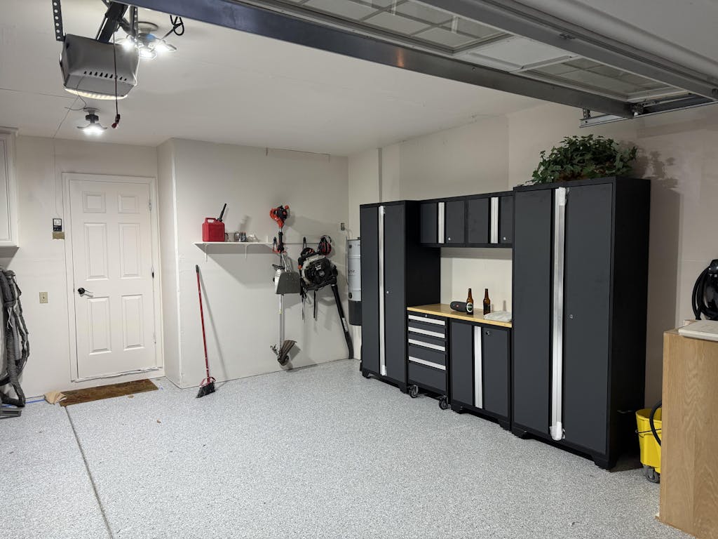 - 4 Multi-Use Lockers, 4 Wall Cabinets, 2 Base Cabinets, 2 Rolling Tool Cabinets and two 48 in. Bamboo Worktops