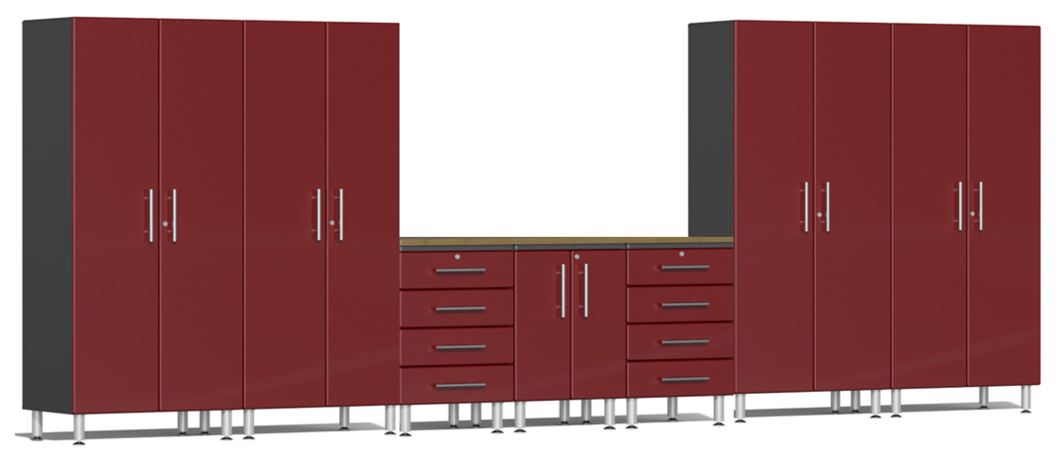 Ulti-MATE Garage 2.0 Series Red Metallic 14-Piece Set with Bamboo Worktop
