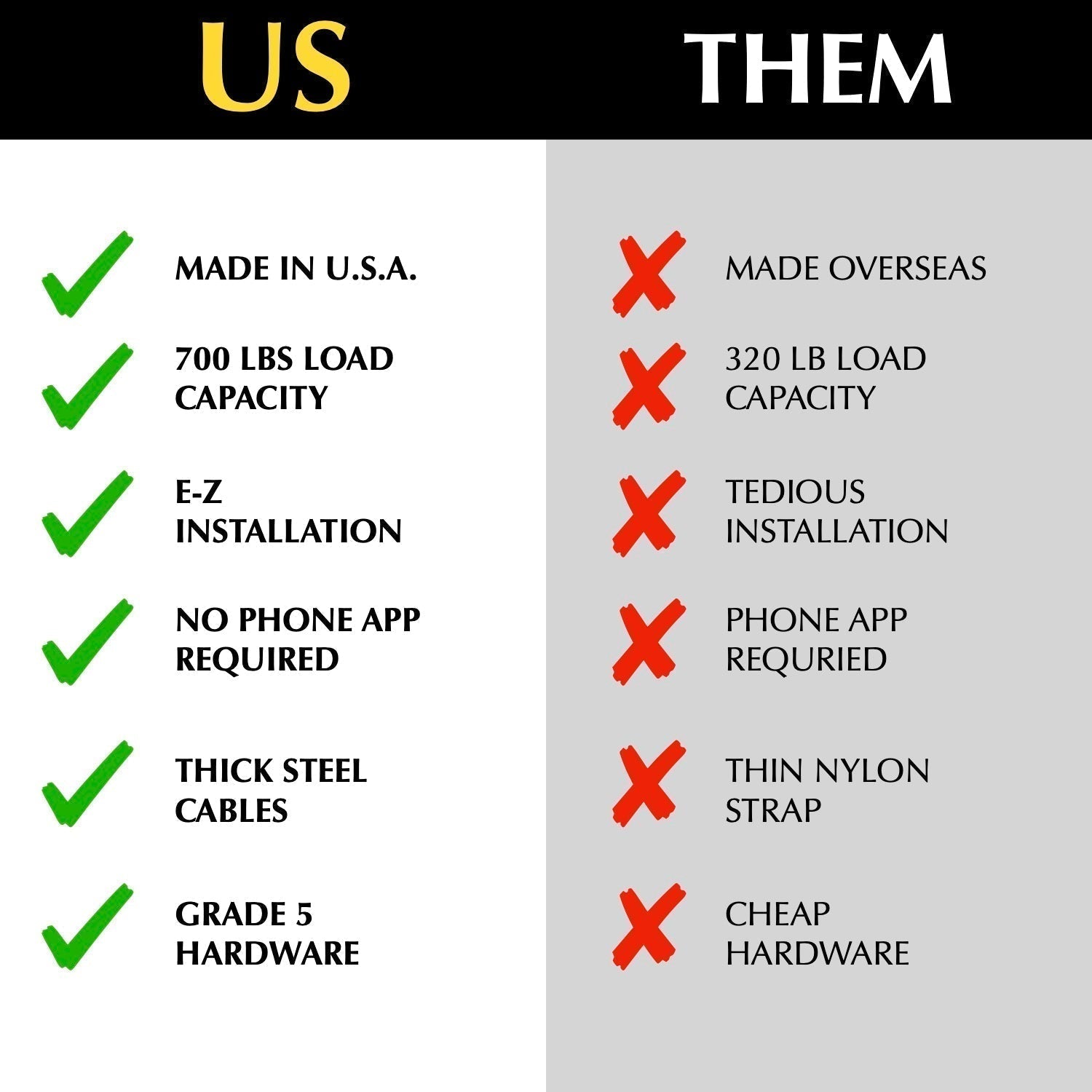 If you are looking for a garage hoist system that is truly state of the art, then this is the unit for you. Totally stable with 2 to 3 times the storage capacity & weight of the competitors on the market today.